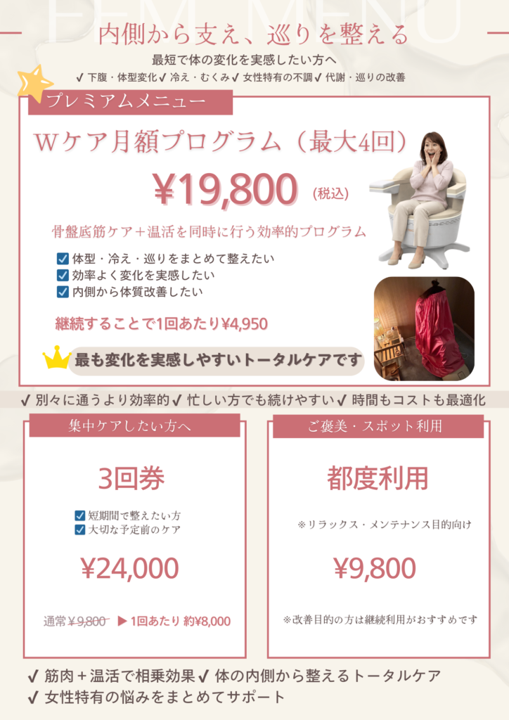 #料金プラン #サブスク #大和高田フェムケア #橿原温活 #香芝よもぎ蒸し #vivioFemRoom