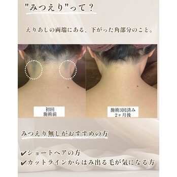 ショートヘアの場合、このみつえりがカットラインからはみ出ることで、